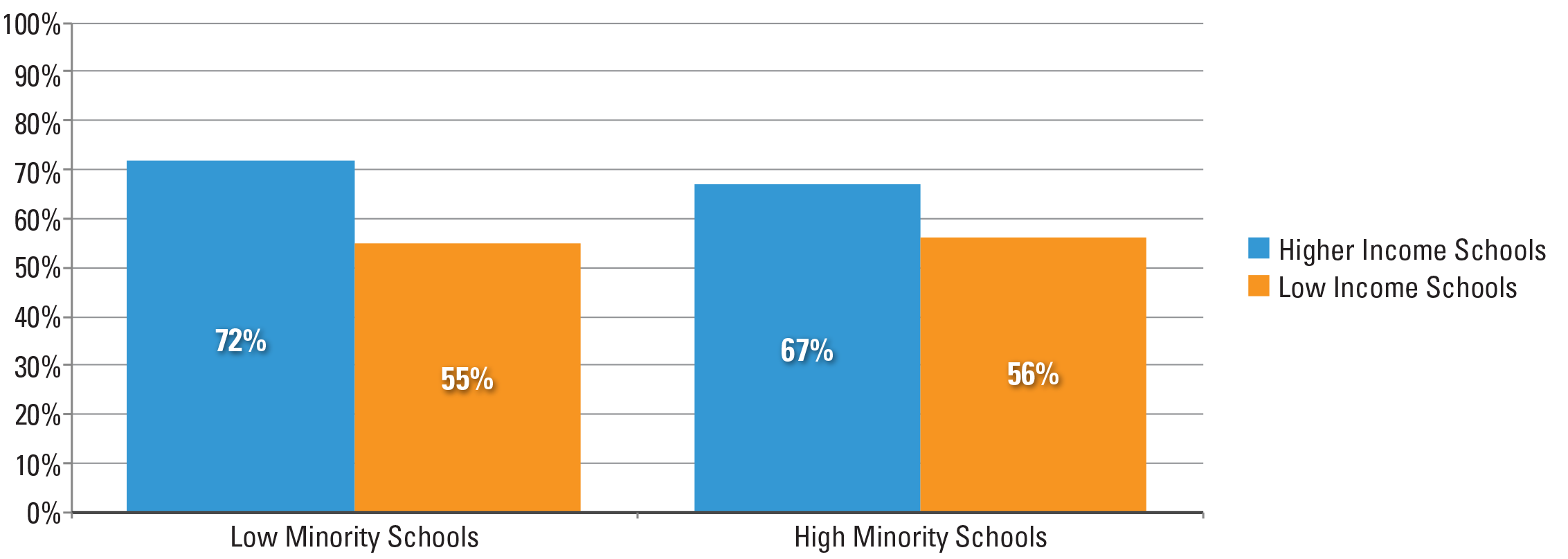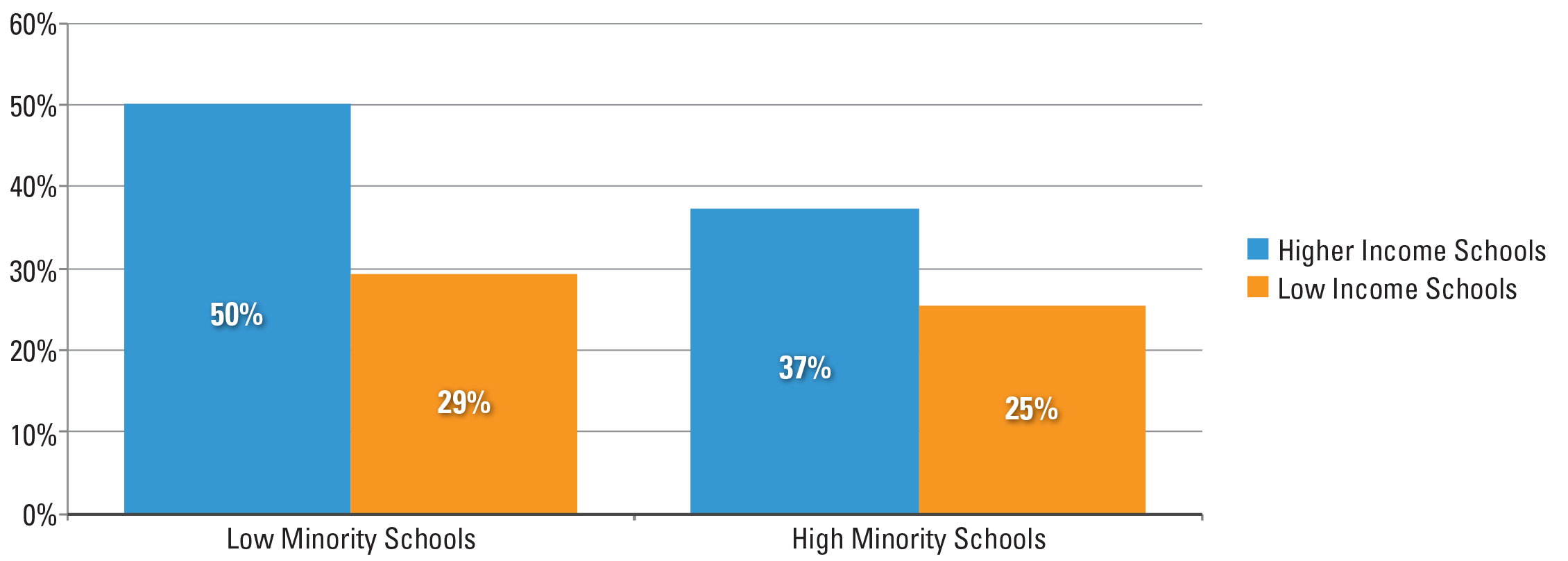 - High minority schools are defined as schools where at least 40 percent of the students are black or Hispanic.