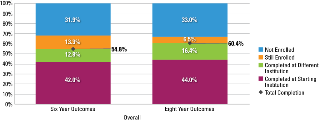 Figure 1. Six-Year and Eight-Year Overall Outcomes for the Fall 2010 Cohort
