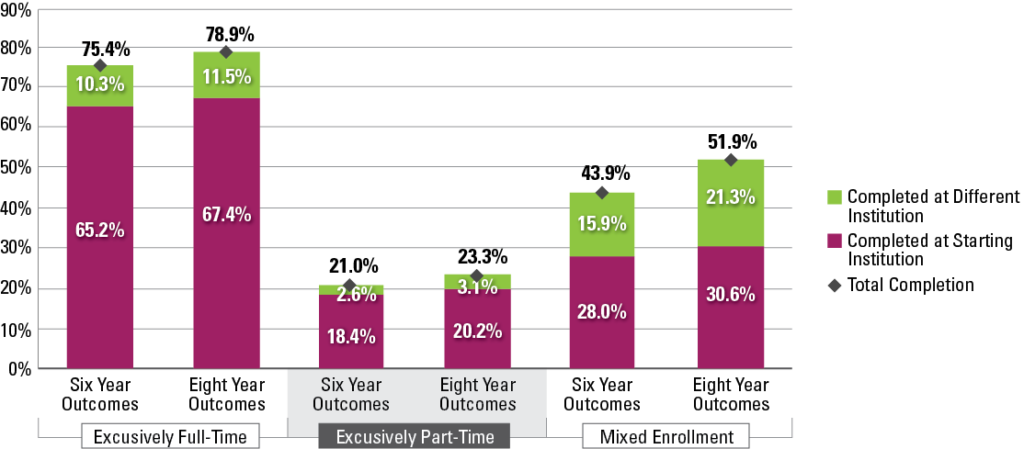 Figure 3. Six-Year and Eight-Year Completion at Starting vs. Different Institution by Enrollment Intensity