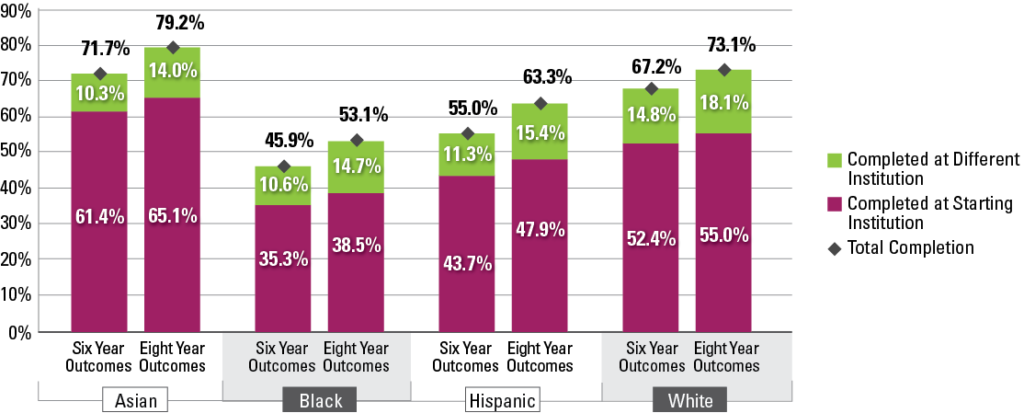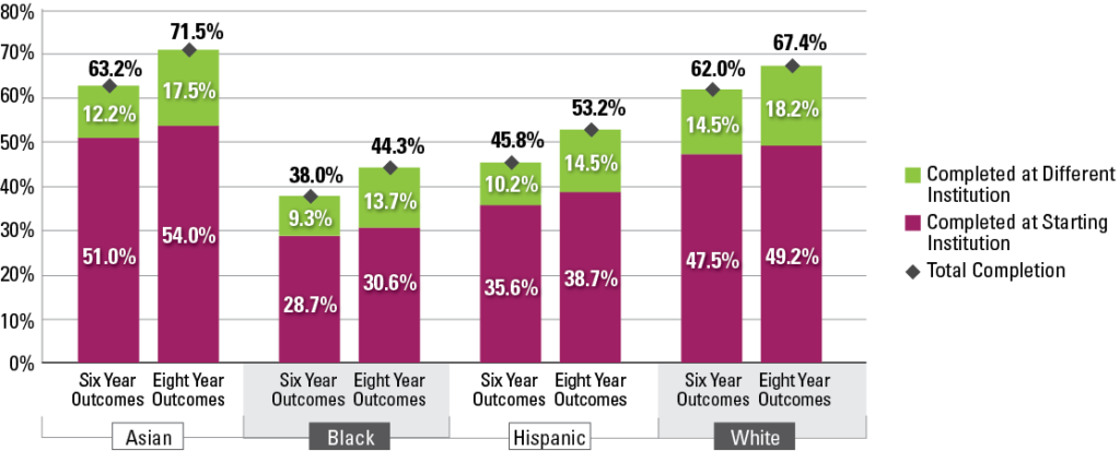 Figure 4. Six-Year and Eight-Year Completion Outcomes by Race and Ethnicity
