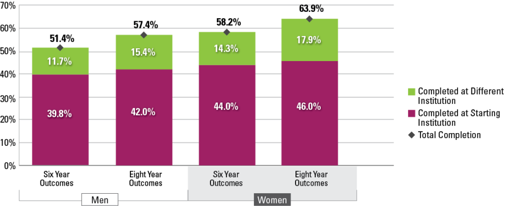 Figure 5. Six-Year and Eight-Year Completion Outcomes by Gender