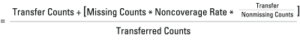 For students who completed a degree or were still enrolled at a different institution by the end of the study period, a “transfer” weight was applied. The transfer weight used was an over-weight based on the coverage of the sector, control, and state of the institution in which the student was enrolled for the last enrollment record, as calculated by the formula provided below: