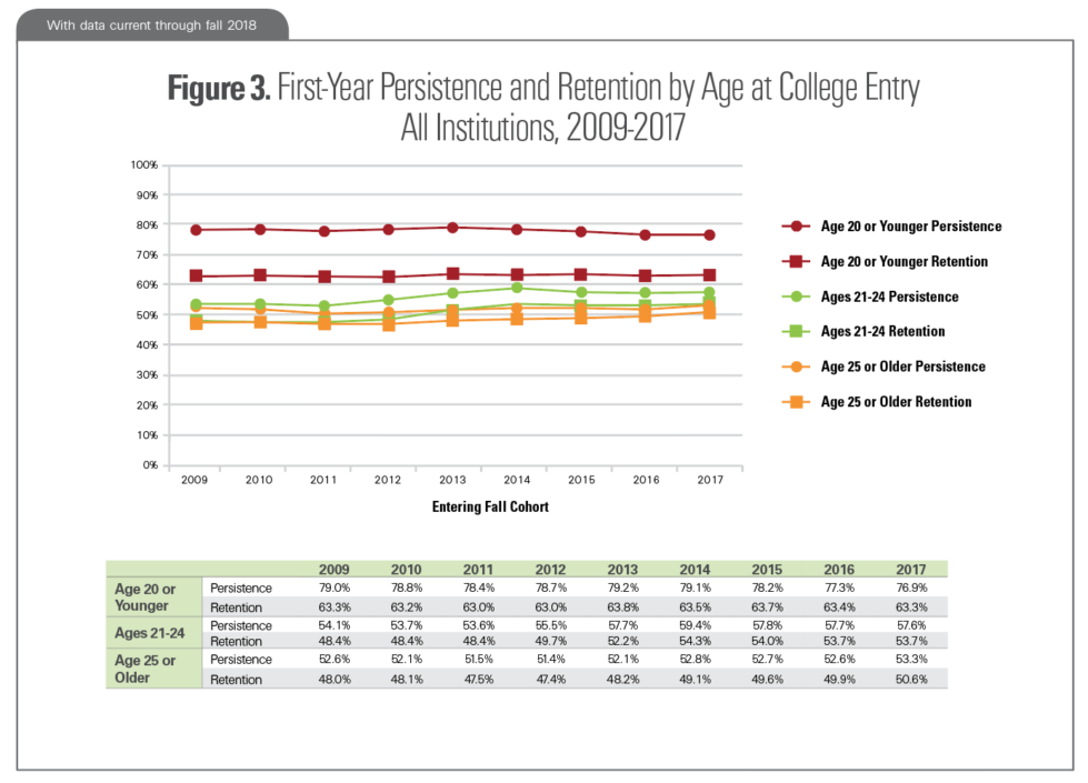 Figure 3. By Age at College Entry, All Institutions, 2009-2017